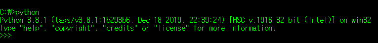 파이썬 설치 후 실행하기 위해서 CMD를 실행후 설치 경로에서 Python 명령어를 실행하면 된다.