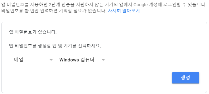 구글 앱 비밀번호 발급받기